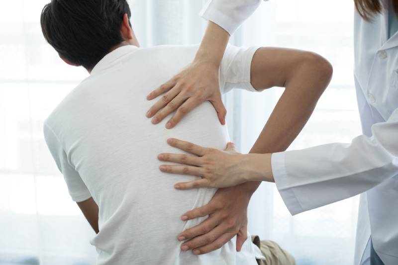A spine specialist, such as an orthopedic surgeon, neurosurgeon, or physiotherapist. A primary care doctor can also refer you to the right specialist.
